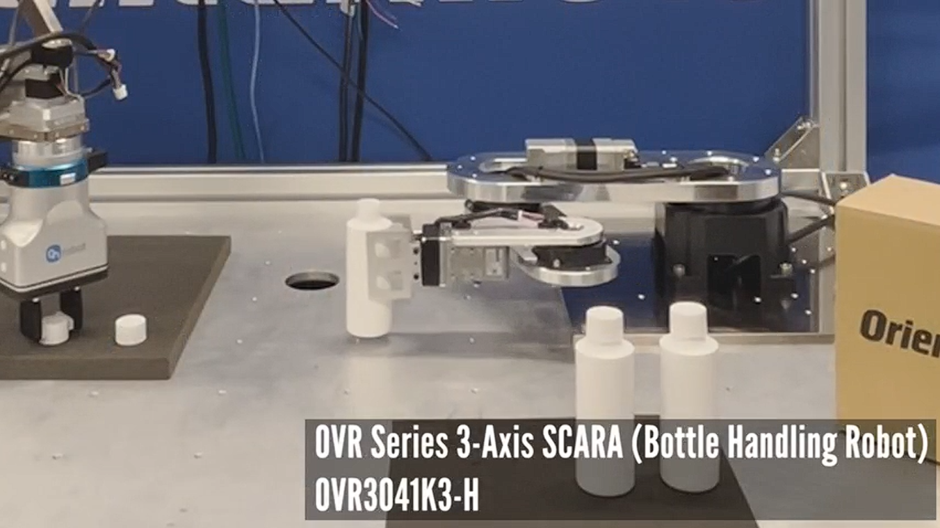 The demo video shows an OVR Series 4-axis articulated robot and an OVR Series 3-axis SCARA working in tandem to unpack bottles, identify caps using a camera, perform accurate capping, and repack the finished product. This demonstration illustrates how a system design that combines the right robot form factor, integrated vision, and coordinated motion can deliver reliable, high-precision packaging automation even in space-constrained environments. The result is a compact, highly synchronized automation cell designed for consistent throughput and easy scalability.